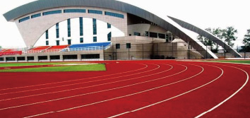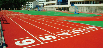 綠拓混合型塑膠跑道主要有兩層:1.混合漿料層,主要由漿料和橡膠顆?;旌隙?。2.面膠層,主要是EPDM和噴涂漿料。